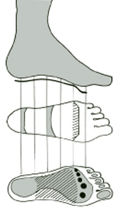 - Per pide traverso-piano con tratto, solo letto plantare senza correzione per es. poliartrite