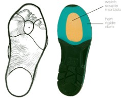 - Per pide traverso-piano con tratto, solo letto plantare senza correzione per es. poliartrite