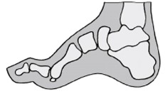 - Arco trasversale allargato, in molti casi appiattito, più basso del retropiede (metatarso cavo)